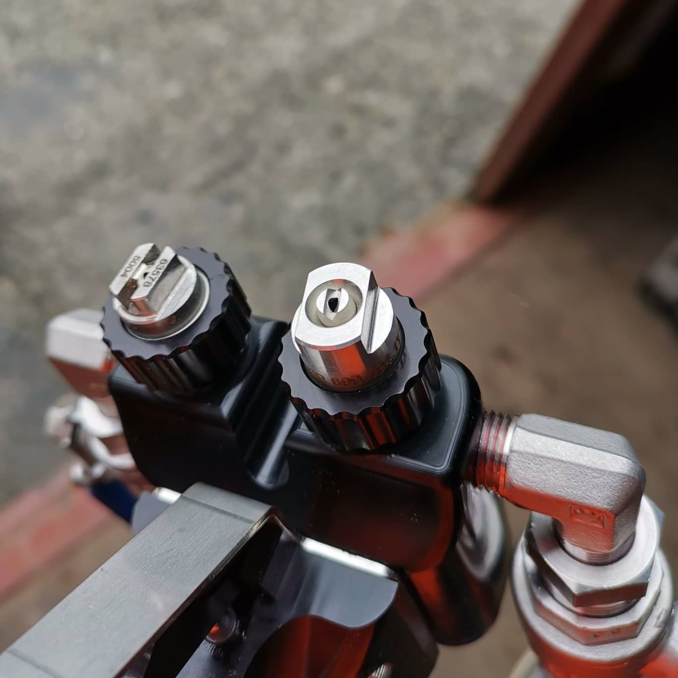 Custom-machined instant-set spray equipment designed exclusively for installing TritoFlex 2K and TritoCryl 2K products.